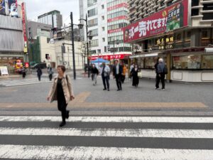 正面の横断歩道を渡ります。